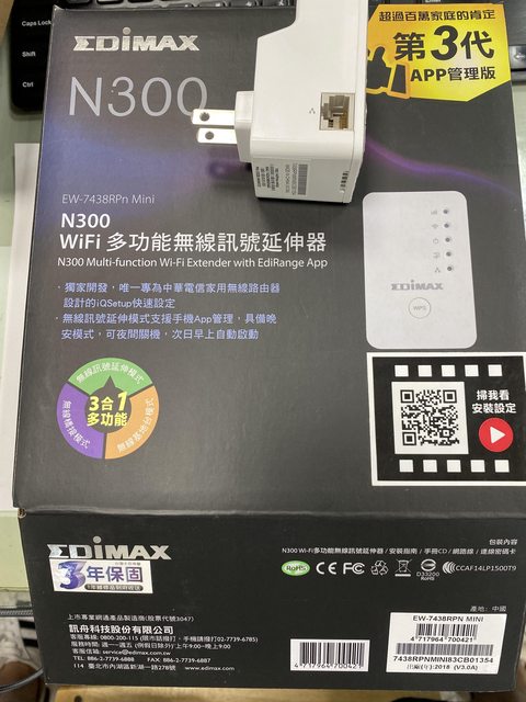 6.EDiMAX N300 WiFi多功能無線訊號延伸器