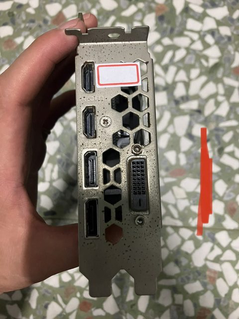 擋板有輕微鏽斑,接口可正常顯示使用,圖中貼紙旁的接口,卡1的一個hdmi,卡2的一個d