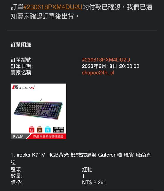 標題[賣/高雄/皆可] irocks K71M 黑 紅軸
