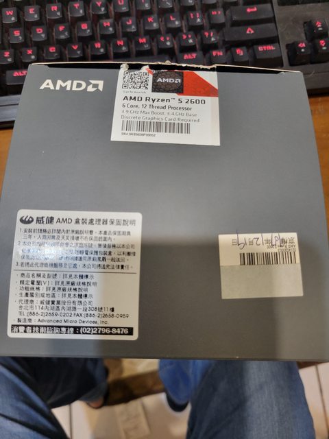 ◎硬體型號: AMD R5 2600 盒裝cpu