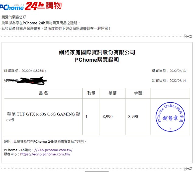 ◎硬體型號:華碩 TUF GTX1660S O6G GAMING 顯示卡