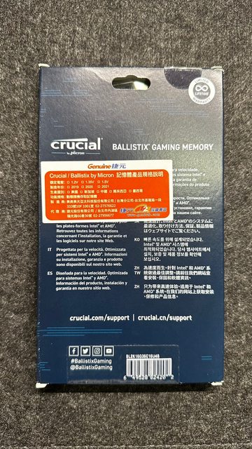 ◎硬體型號: 美光 Crucial Ballistix DDR4-3600-32G(16GB*2)-黑(CL16)
