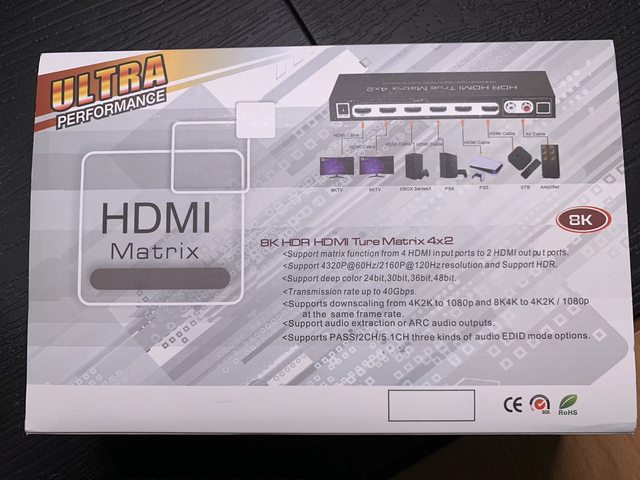 1.FERRISA 8K 4x2 HDMI Matrix 附紅外線遙控器