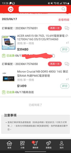 皆於2023/06/17購入
