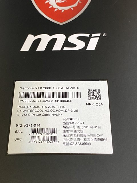 標題[賣/全國/皆可] MSI 2080 Ti SEA HAWK X 水冷