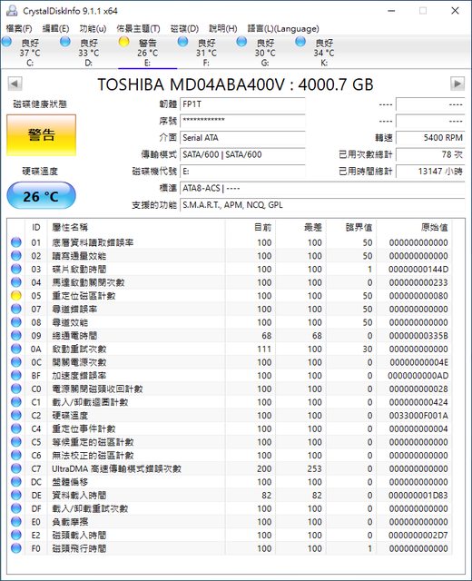 ◎品樣狀況: 1-3 過保,硬碟正常慢掃全綠