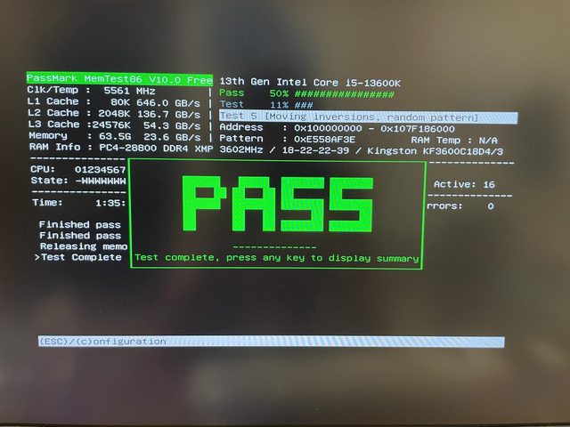 主機微白化換下,MemTest86跑一個半小時PASS,兩