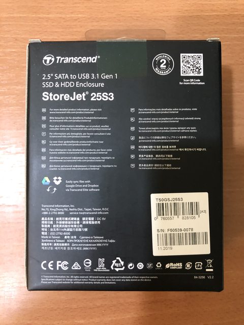 ◎硬體型號: 創見StoreJet 25S3 2.5吋SSD/HDD外接盒