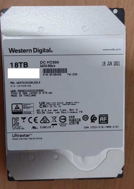 1.WD HC550 18TB WUH721818ALE6L4