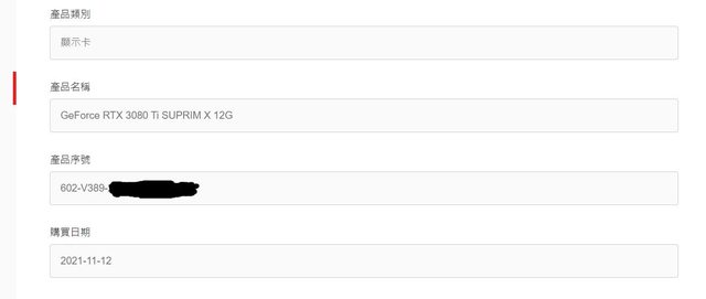 ◎硬體型號: 微星 RTX 3080 Ti SUPRIM X 12G