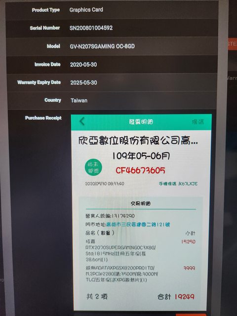 ◎硬體型號: 技嘉 RTX2070s gaming oc 3x