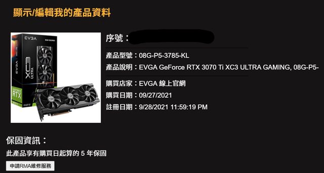 2021/9/27 官網購入有盒裝無發票,保固到 2026/9/28,自用遊戲卡沒挖礦過