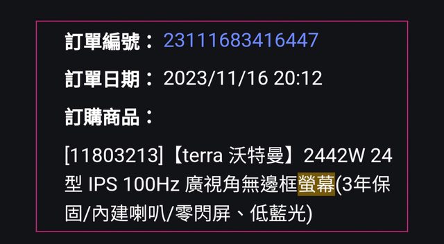 標題[賣/全國/皆可] terra 2442W 螢幕