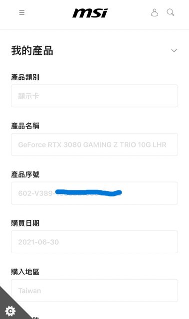 標題[賣/北桃/面交] MSI 3080 GamingZ Trio 10G LHR