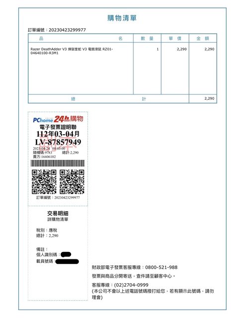Pchome購入,購入日期20230424,保固兩年,交易會附上發票電子檔。