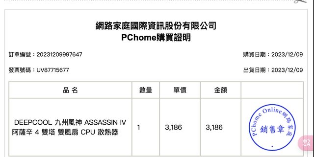 2. 2023/12/08 pchome 購入, 保固內(三年)