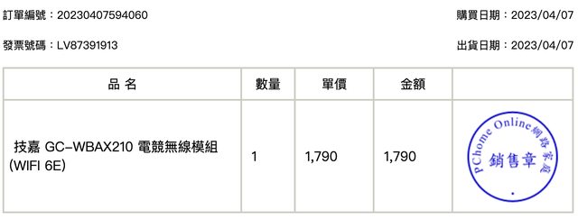 6. 2023/04/07 pchome 購入, 保固內(2026/05/04)