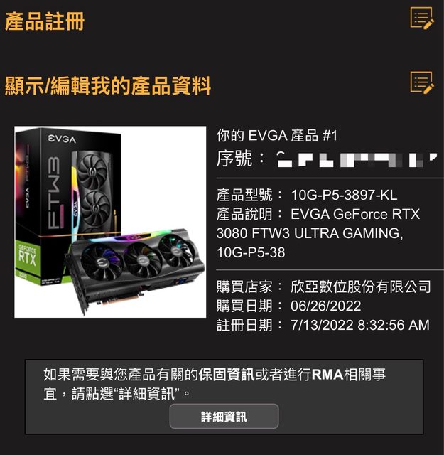 ◎硬體型號:EVGA GeForce RTX 3080 FTW3 ULTRA GAMING 10G