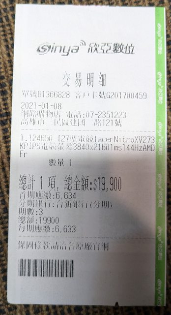 6.2020/7 Asus買螢幕贈品 無保 未使用 但開盒檢查有油漬稍微清潔過
