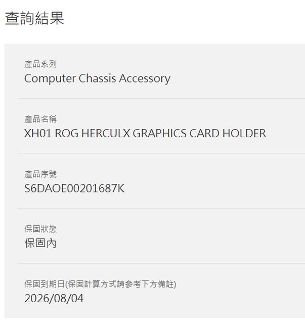 ◎硬體型號: ROG Hercult 顯示卡支撐架