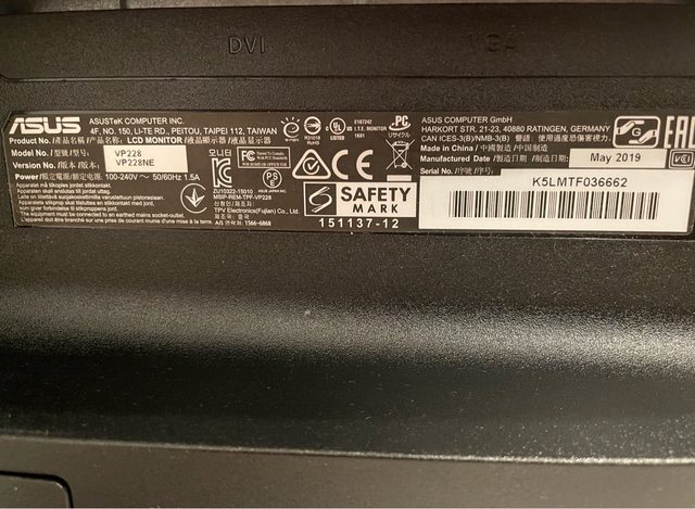 ◎硬體型號: Asus VP228NE