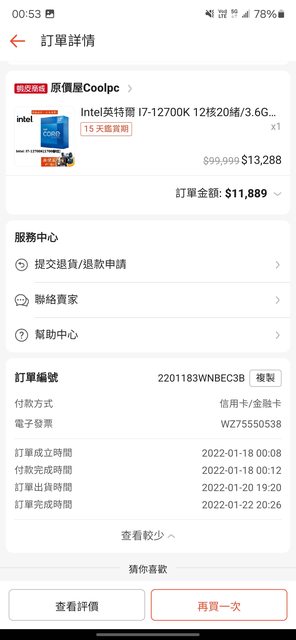 1.2022/1/25原價屋蝦皮商城購買,已登陸延長保固