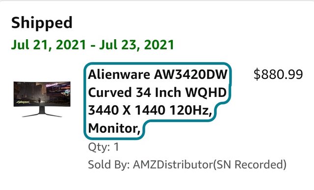 ◎硬體型號: Alienware AW3420DW