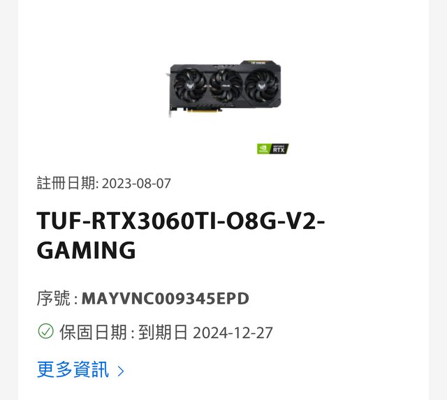標題[賣//] ASUS Tuf RTX 3060 ti