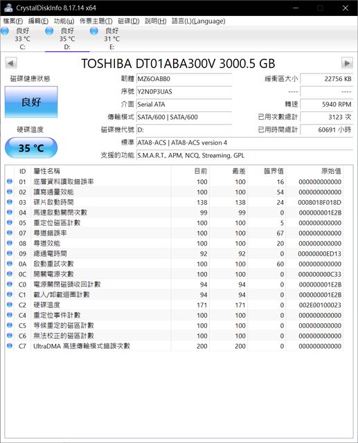 1.TOSHIBA 3TB 監控碟