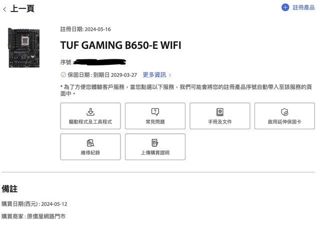 全機零件均在原廠保固內,主機板及顯卡已註冊延長保固