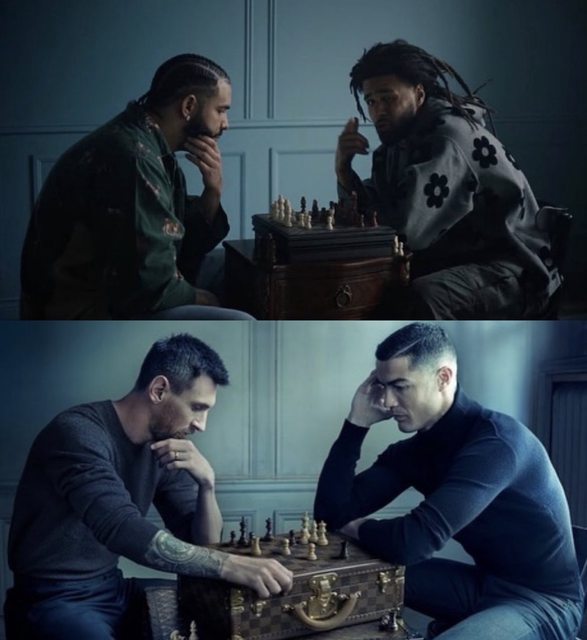 Drizzy 和 Cole 兩人下西洋棋的部分則是致敬 Messi 和 C.Ronaldo
