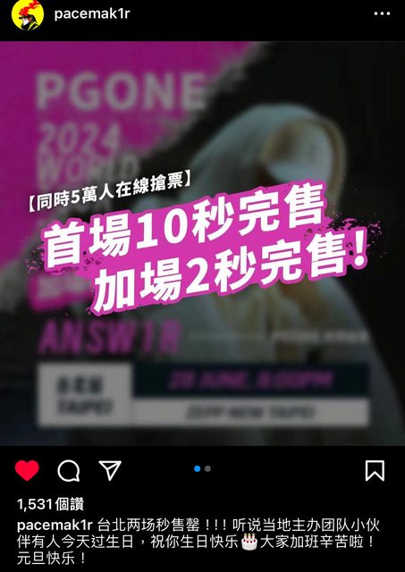推 mailman: Psy. P也是一兩分鐘內賣完 兩個月後就要開唱啦 12/29 07:43