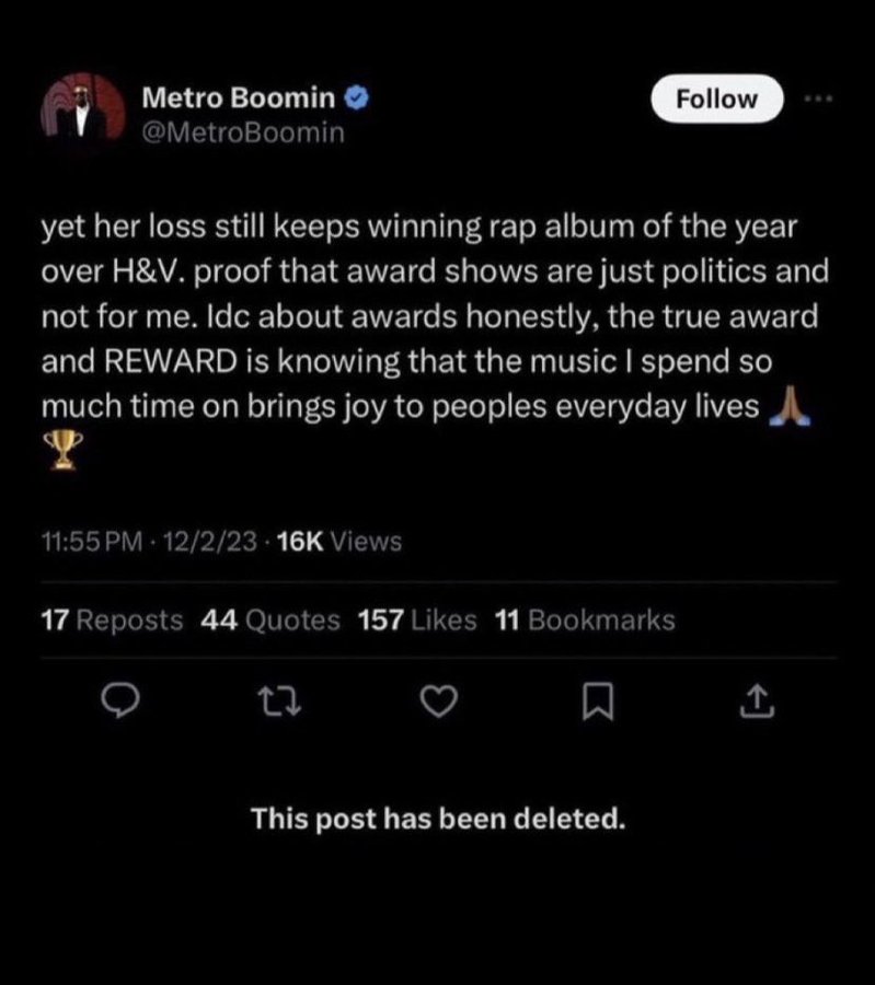 → laygoyolo: 然後也有謠言說Drake原本想要放verse在H&V上 但被Metro 01/14 17:14
