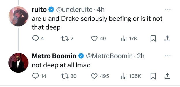 → mitchellwei: Drake 跟metro booming 什麼牛肉 01/14 11:48