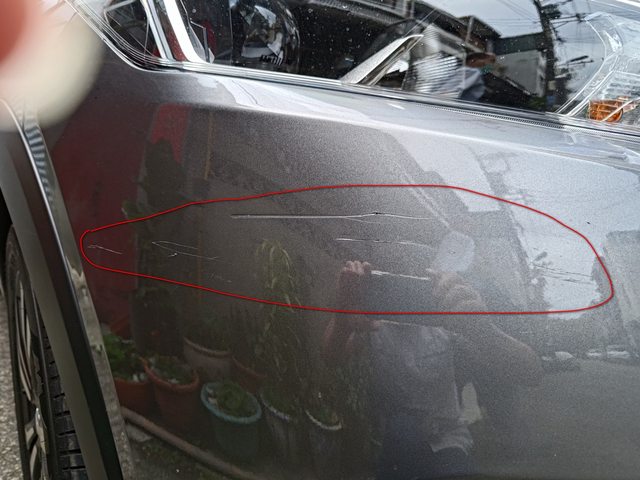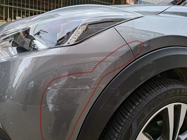 順便右前方的刮痕也一起,之前彎進自家車庫弄到的,