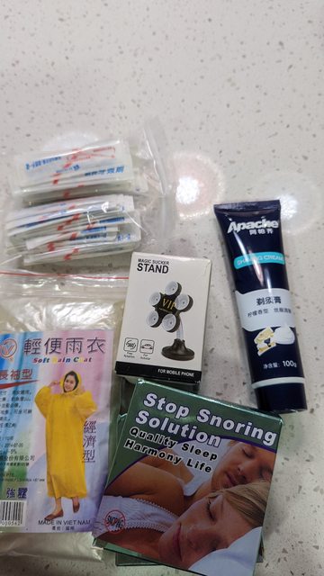 剃鬚膏,牙籤,輕便雨衣,止鼾小物(全新