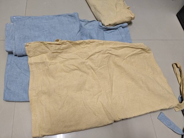 1 窗簾布橘色跟藍色各兩條 約170~190*150 已經洗過