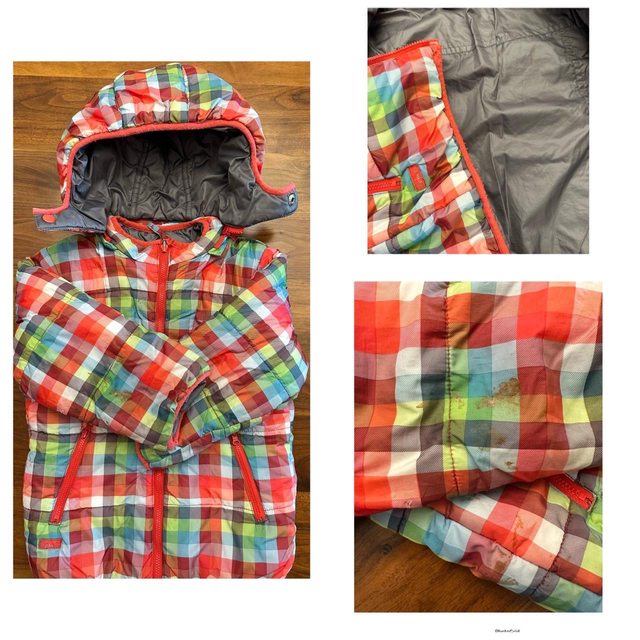 3. 冬天外套兩面穿,有顏料污漬,約105cm穿。