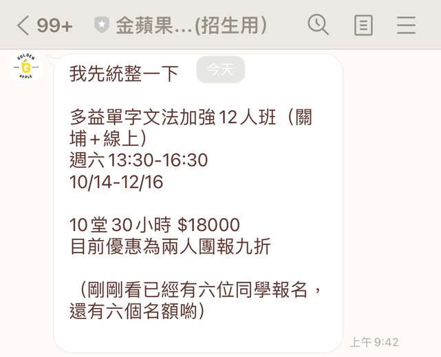 標題[閒聊] 金蘋果-多益單字文法加強班