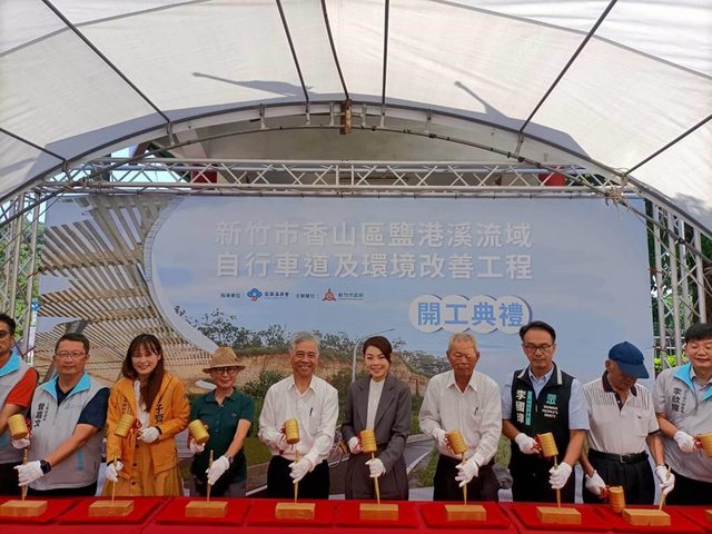 新竹市政府攜手客家委員會辦理「香山鹽港溪流域自行車道及環境改善工程」,今日舉行