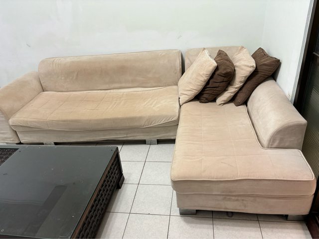 1.二手L型沙發+腳凳(沙發布可拆洗)