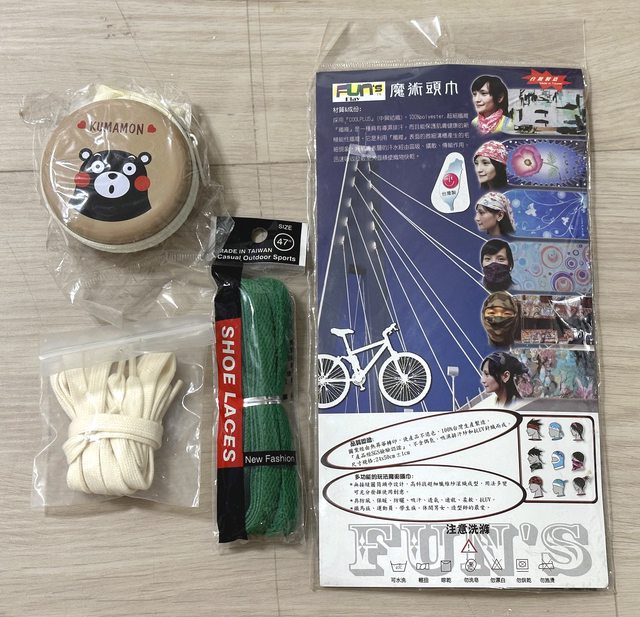 2.未拆封雜物:頭巾*1、鞋帶*2、零錢包*1