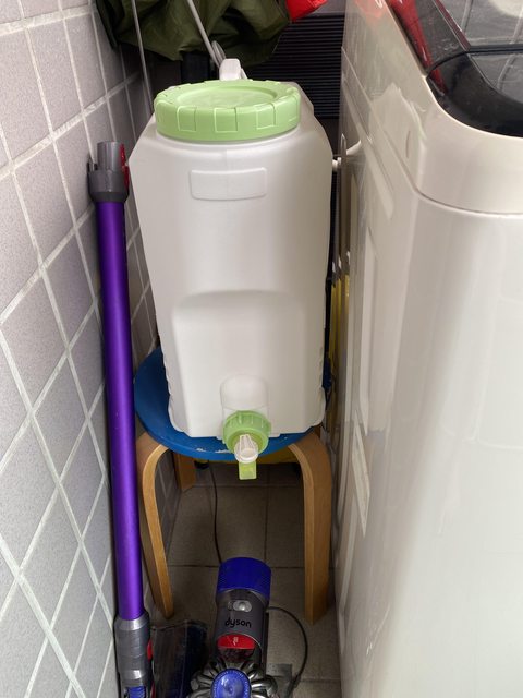 20公升帶水龍頭的水桶、底下椅凳有脱漆