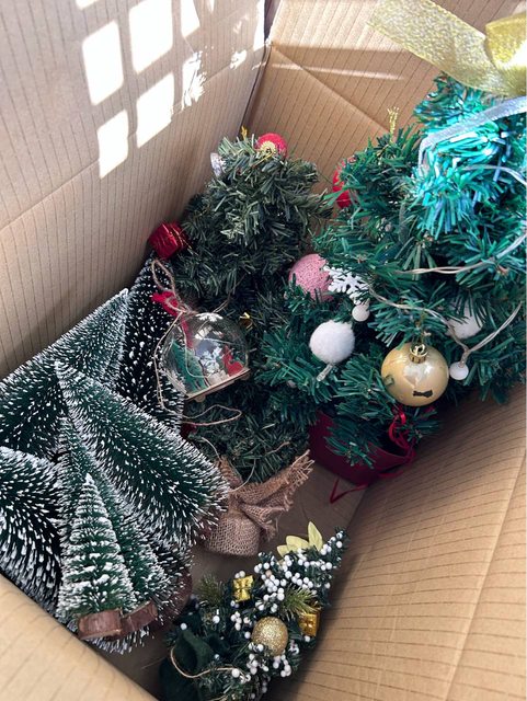 1. 一箱聖誕裝飾(迷你聖誕樹數棵、一個小玻璃球吊飾)