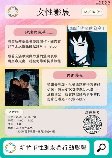 12月有免費電影+映後座談,歡迎大家在12/26的午後一起來看電影,位置在舊中興百貨旁