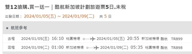 標題[徵求] 急徵合購新加坡機票買一送一