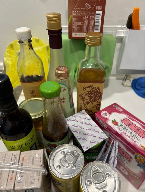 物品項目:豆奶、豆腐煲罐頭、薑黃粉、醋及醬料等