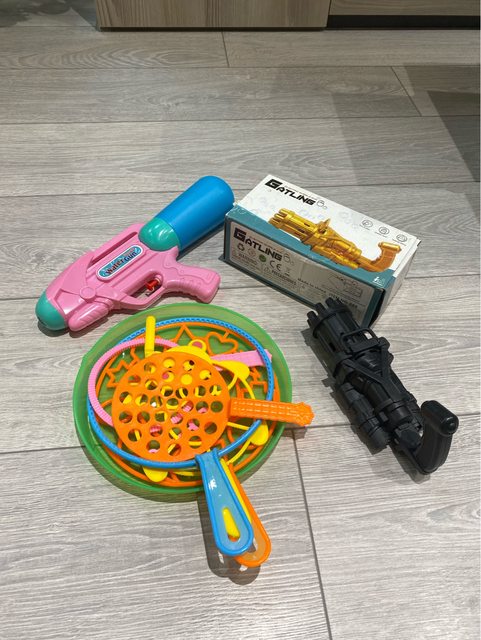 5.泡泡工具+水槍+ 玩具槍(有聲音會震動)