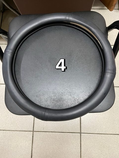 4.特斯拉Y的方向盤把皮套(二手),使用約不到一個月,因裝上去方向盤變很大,開不