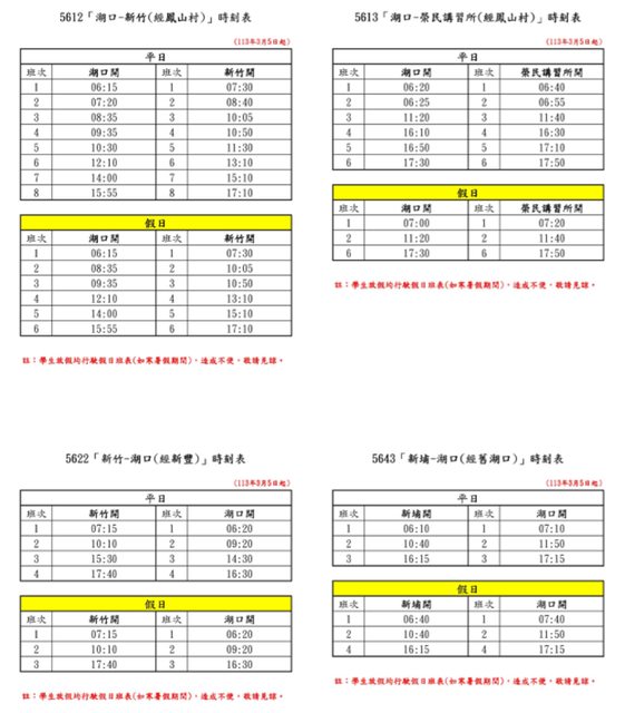 標題[閒聊] 新竹客運 3/5 調整4路線發車時間